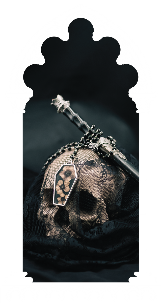 Floral Bat Coffin Necklace - White, Sakura, Garnet