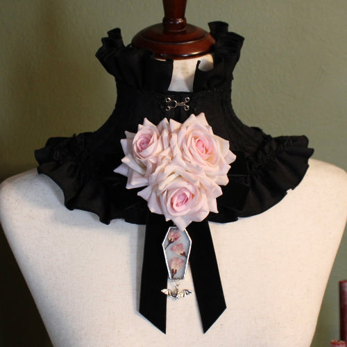 Dearly Departed Corsage - Black Ribbon, Pink Roses, Sakura
